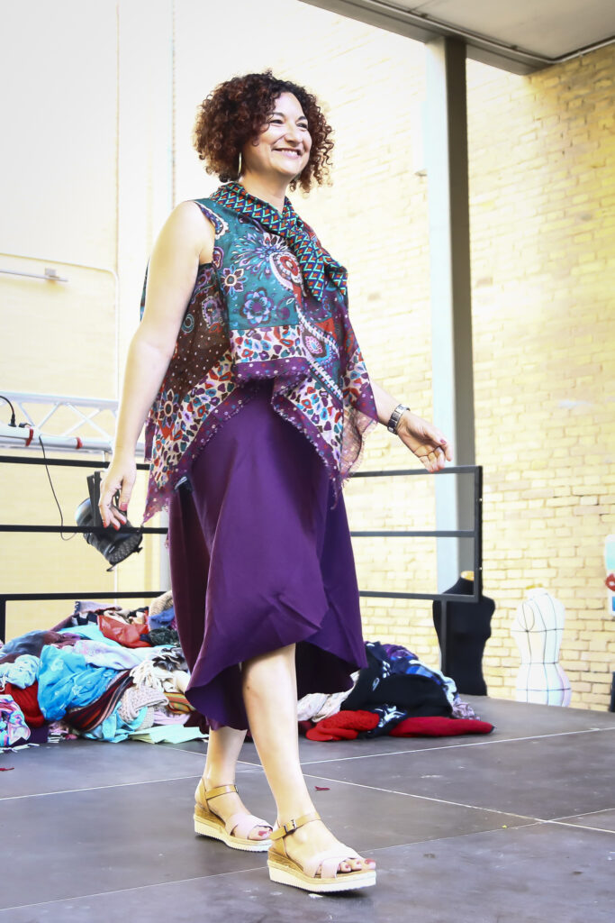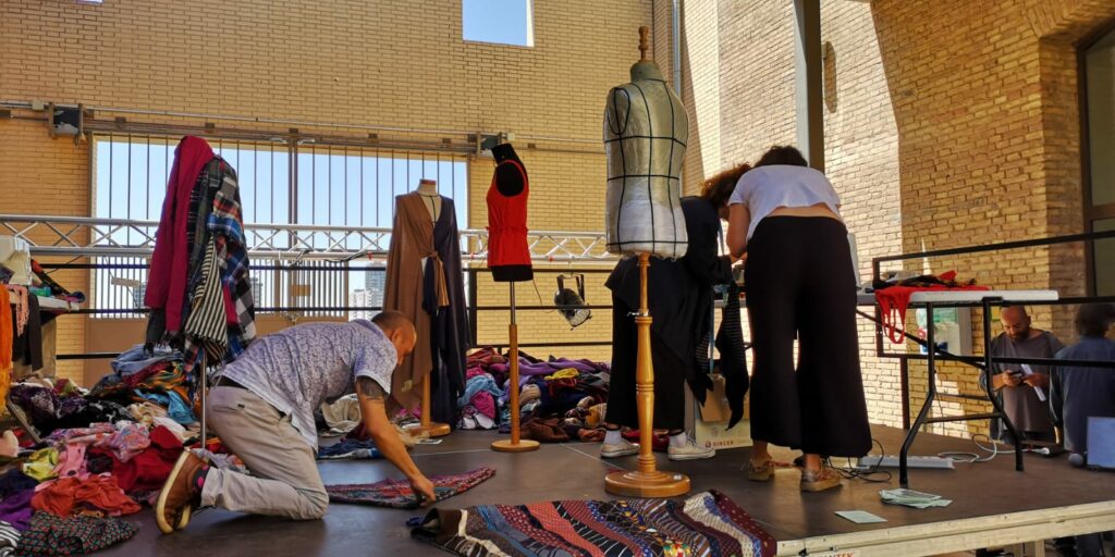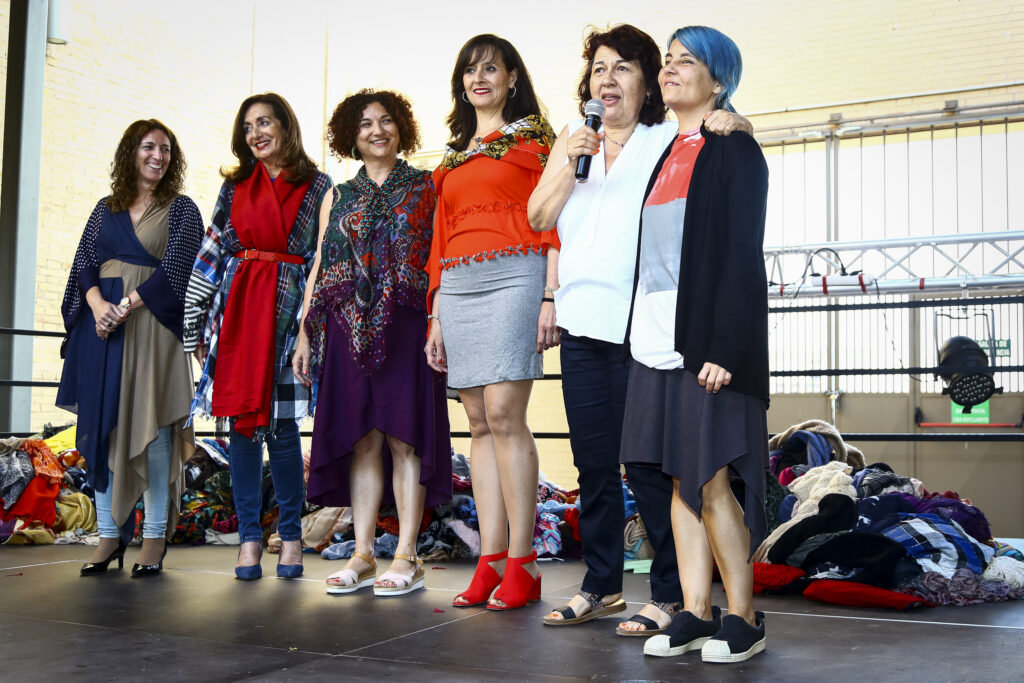 Hasta ahí todo puede resultar más o menos común. Lo que tenía de especial este reto, era que el tiempo del que disponían para elegir la prendas, pensar en el diseño y crearlo, en 5 horas, y al final de la jornada se haría un pequeño desfile, que también guardaba una sorpresa. De esta manera l@s asistentes a la jornada podrían ver en vivo y en directo la creación de prendas upcyling en tiempo record dando una segunda vida a prendas que habían sido donadas en los contenedores de la ciudad.