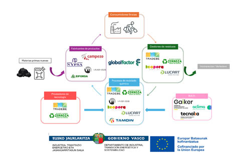 CHEMCYCLE está financiado por el Departamento de Industria, Transición Energética y Sostenibilidad y cofinanciado en el marco del Programa FEDER del País Vasco 2021–2027. El proyecto contribuye a la Estrategia de Economía Circular de Euskadi 2030, al Pacto Verde Europeo.