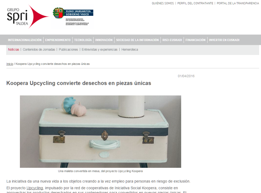 El área de Innovación del Grupo SPRI, nos entrevistaron la semana pasada, interesados en saber algo más acerca de la línea de producto que desde Koopera Upcycling tenemos a la venta en nuestra tienda on line.
